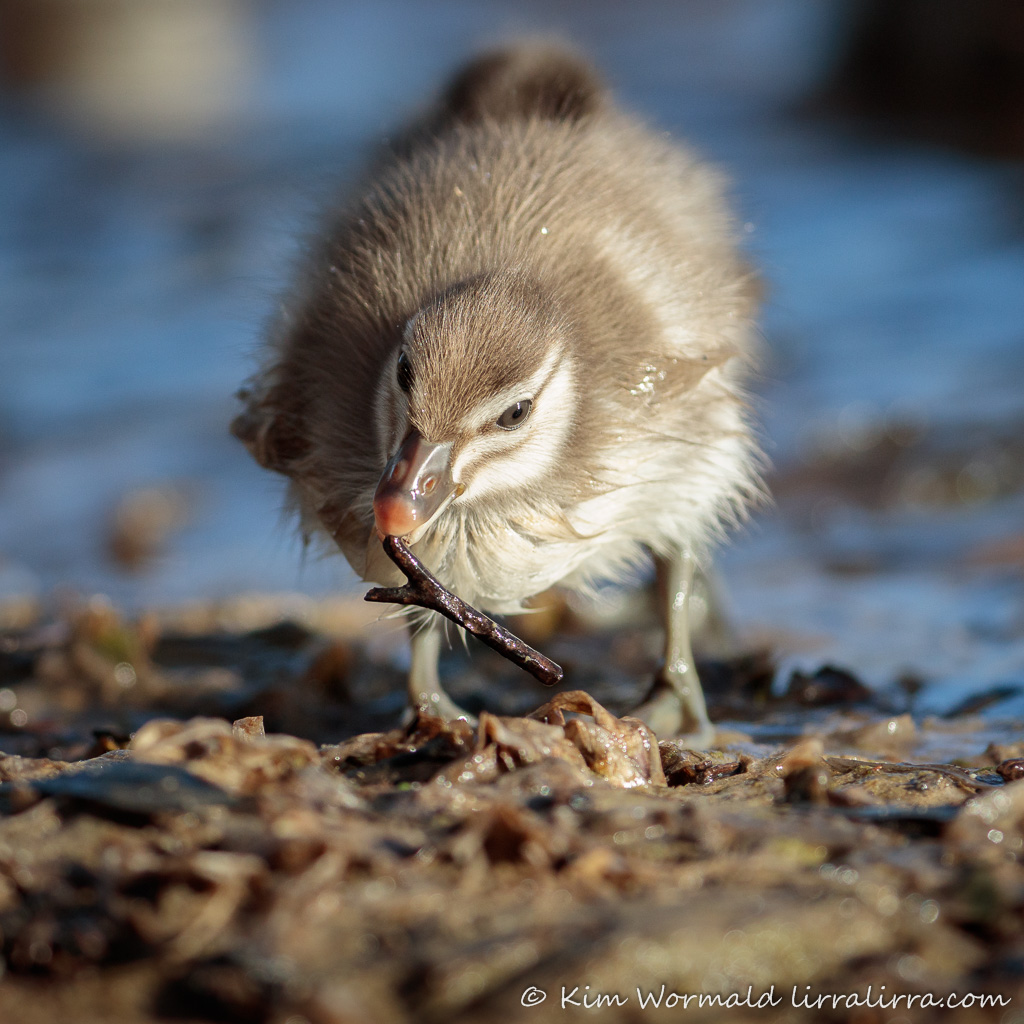 I like the funny little pose of the duckling above as it tiptoes across the muddy bank.