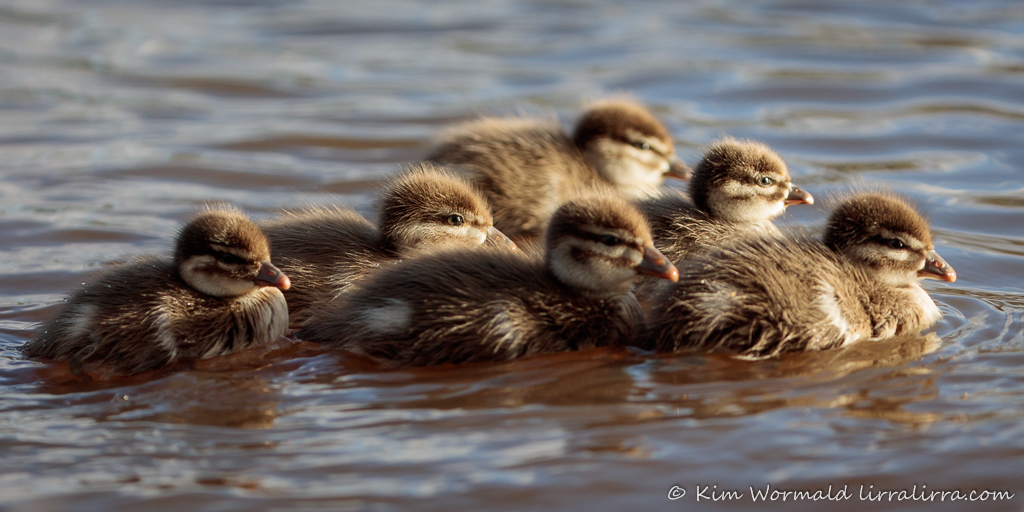 I was heading to Neds Corner with a friend and we stayed overnight at Buronga, just north of Mildura. We took a wander along the mighty Murray River and saw two adult Australian Wood Ducks with a ridiculously large family. Trying to count the fast-moving flurries of fluffiness was impossible until they left the water and were strung out across the grass – we did numerous check counts and there is no doubt about it, there were 29 tiny ducklings and two extremely busy adults.