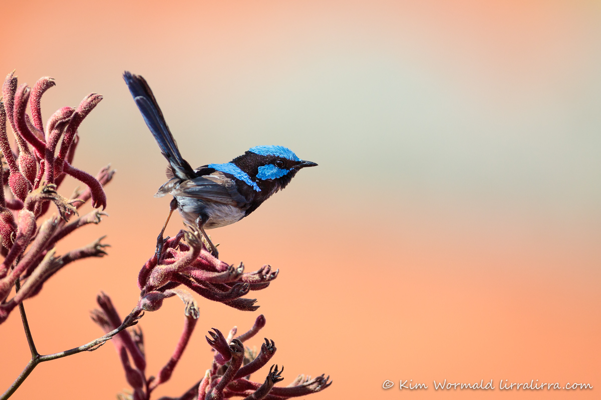 I took the image above on a recent visit to Cranbourne’s Royal Botanic Gardens. I took many photographs of New Holland Honeyeaters and Eastern Spinebills as they fed on nectar from the Kangaroo Paw. Then this little Superb Fairy-wren appeared briefly as he searched for insects and spiders among the blossoms. Starting the previous sentence with ‘then’ took me back to primary school and being told never to start a sentence with ‘then’, ‘and’ or ‘but’. I was at a literary conference in the Northern Territory in the 90s when Colin Thiele gave a brilliant talk during which he said there was a whole generation of adults who would have an affair before they’d start a sentence with ‘but’ – I’ve never heard a conference audience laugh so loudly.