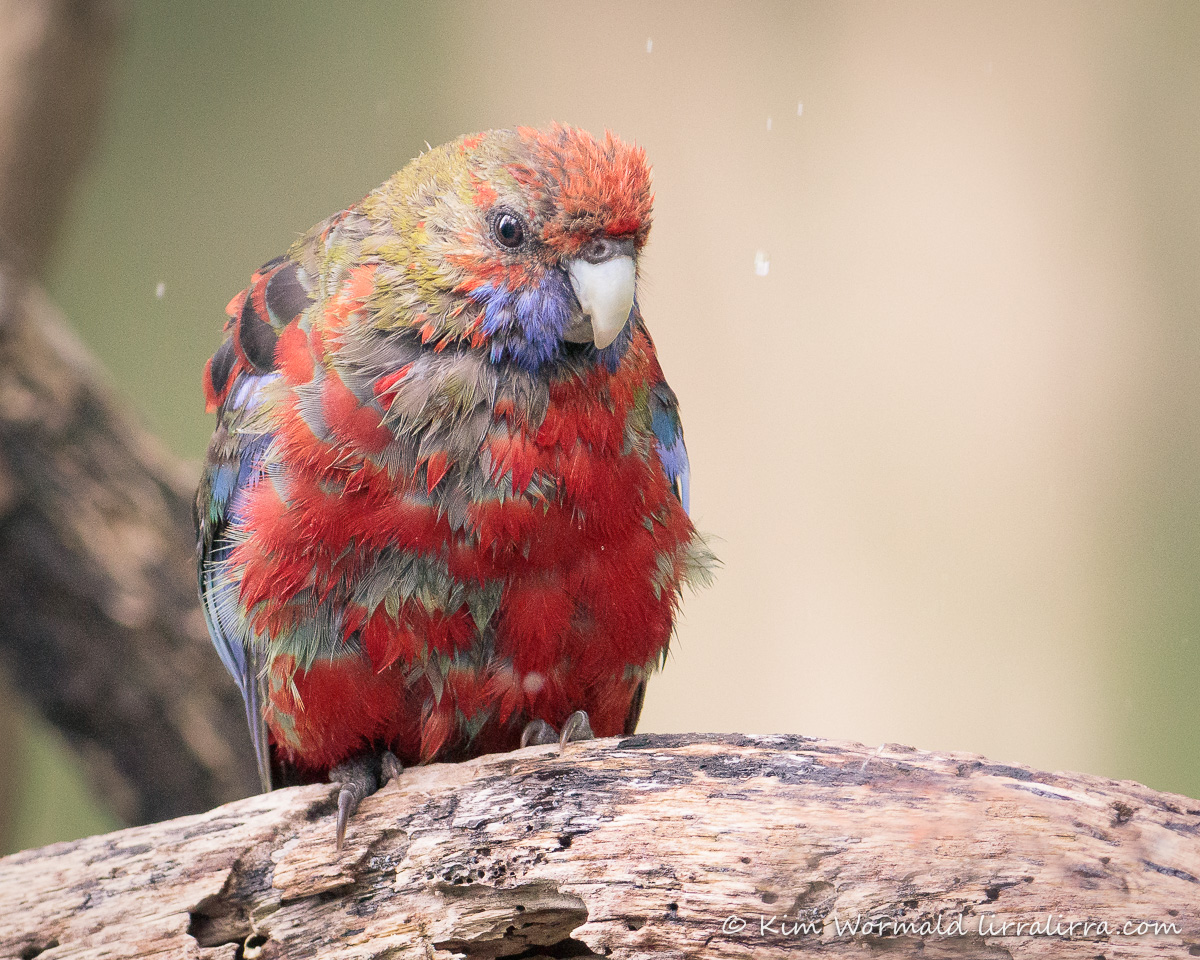 With temperatures over 40 degrees Celsius the birdbaths have been visited by many bathing beauties, including this juvenile Crimson Rosella.