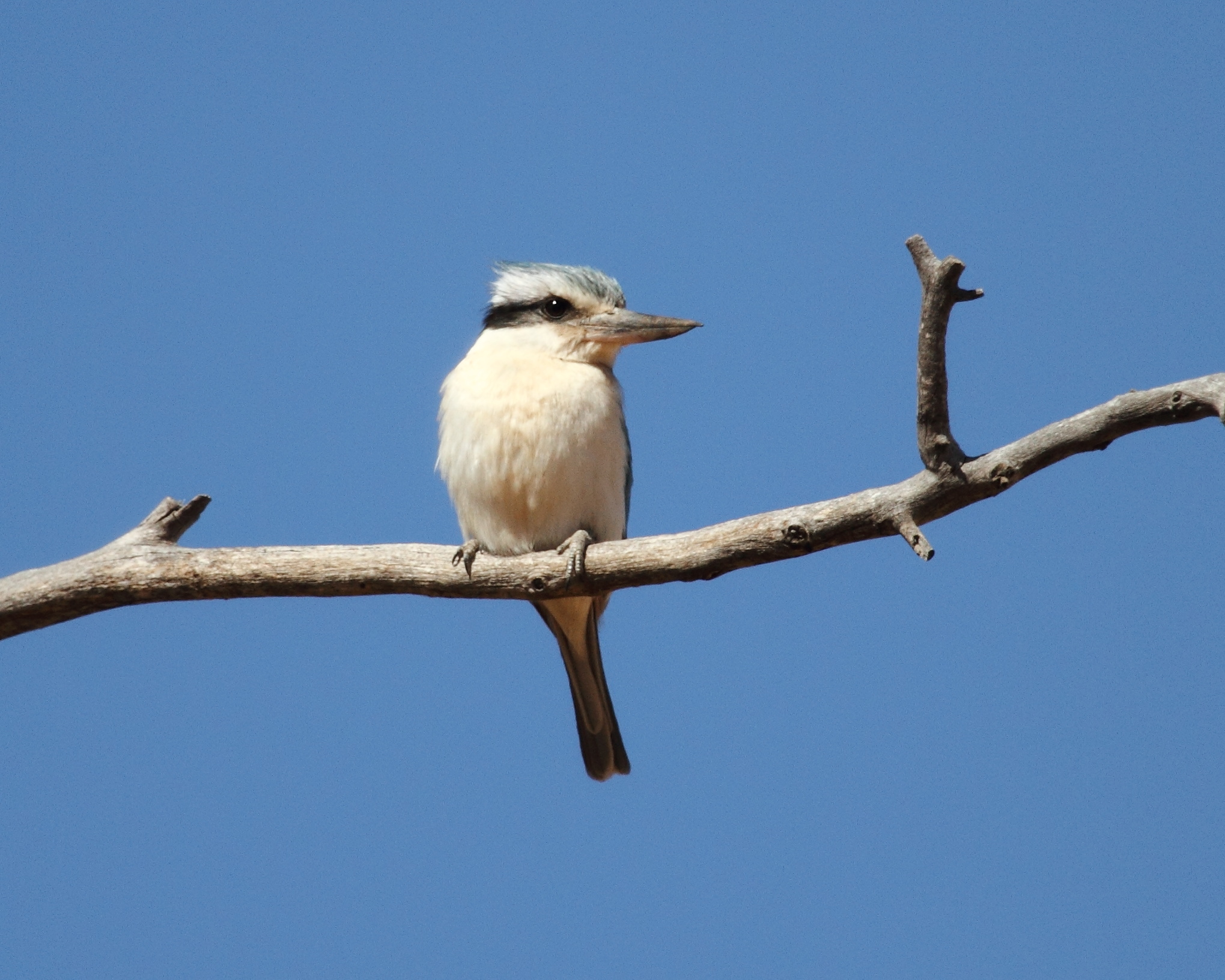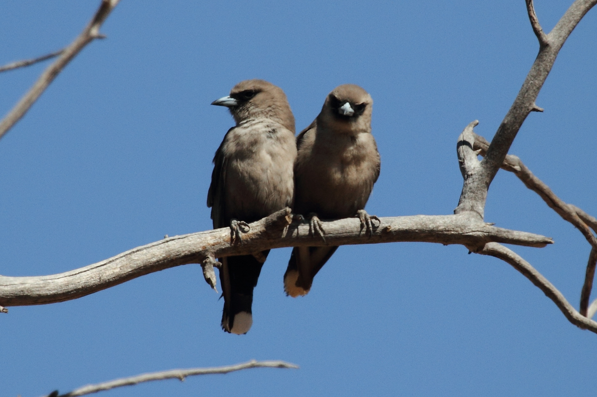 This pair of woodswallows kept an eye on me while I was photographing the Red-backed Kingfisher. I took so many shots of the kingfisher only to find that the ones that were in focus weren’t perfect poses and the ones that were perfect poses weren’t in focus: such is bird photography, for me anyway. The second image shows a hint of the red on the kingfisher’s back.