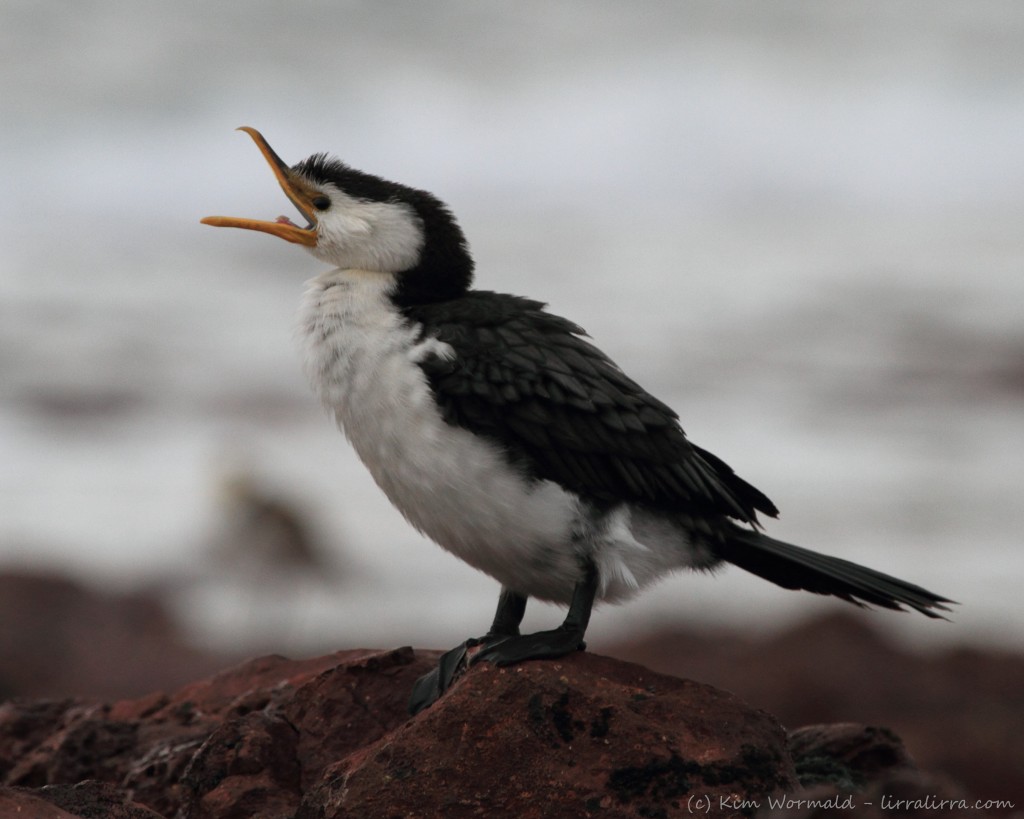 Little Pied Cormorant – buffetted by the wind and hanging on with those rubbery feet.
