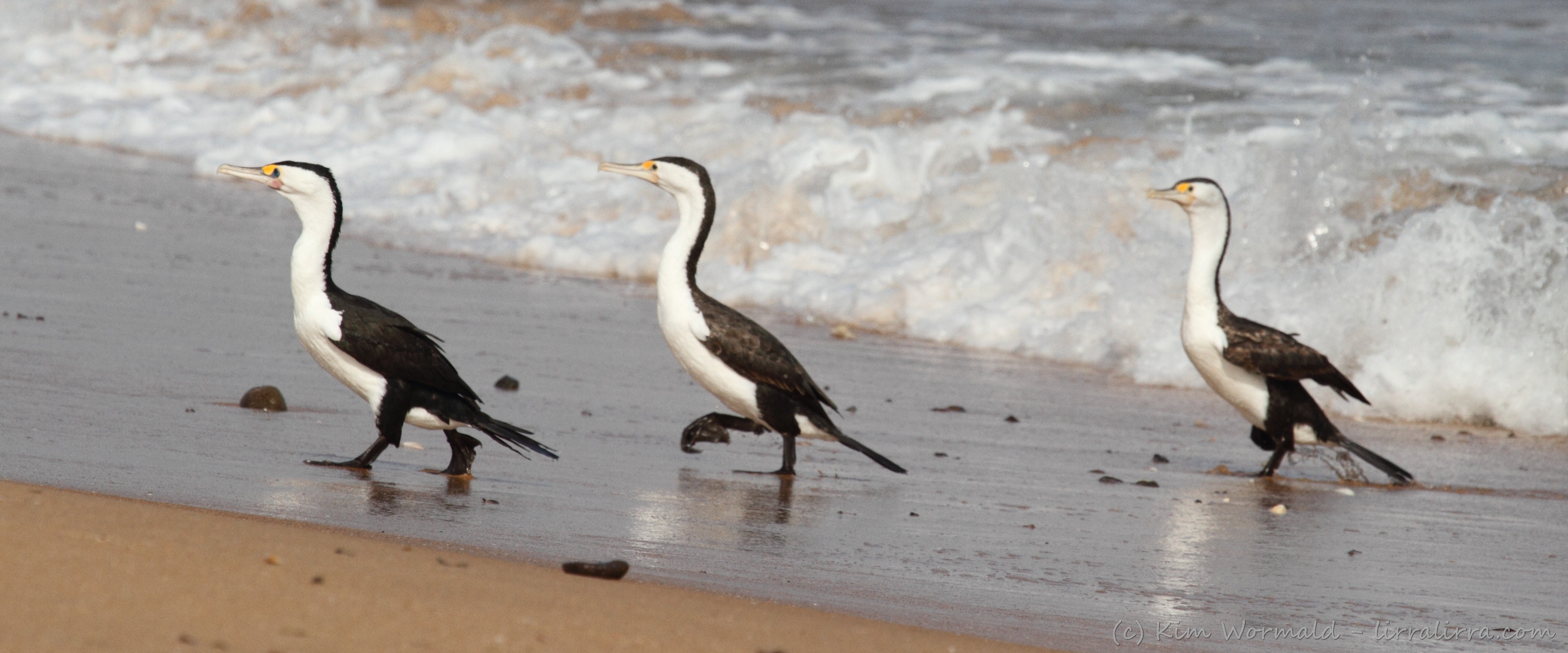 Pied Cormorants (Phalacrocorax varius) – by the left, quick march.
