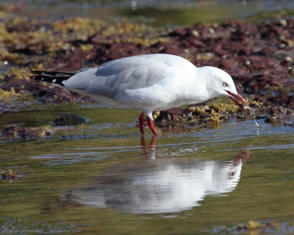 Silver Gull (Chroicocephalus novaehollandiae) – with a soldier crab