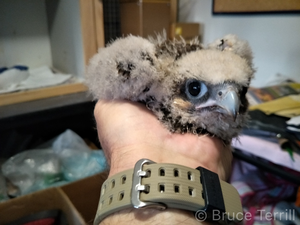 Bruce cares for sick and injured raptors including looking after nestlings that have fallen from nests or been orphaned or abandoned by their parents. The nestling above looks incredible, such a tiny bundle of vulnerability and yet its magnificent potential is clear from the look in its eye and its strong bill.