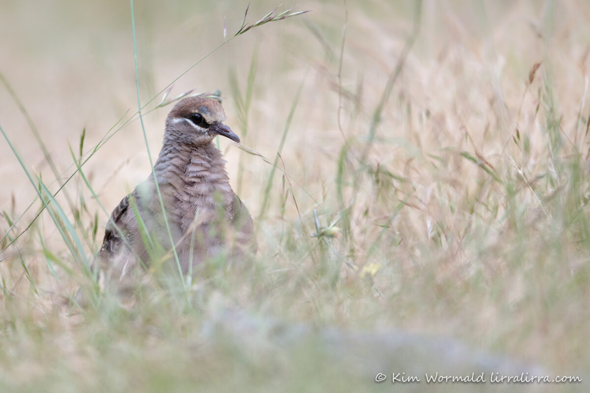 Excellent shot Kim of the Bronzewing’s head/eye with white band underneath and soft looking ruffled breast feathers. Also liked the way in which the bird’s wing showed just a small amount of distinguishing bronze colouring leading me to think this could be a part of a future ID quiz? The softly waving grasses were a perfect foreground framing. Warm regards, Alison.