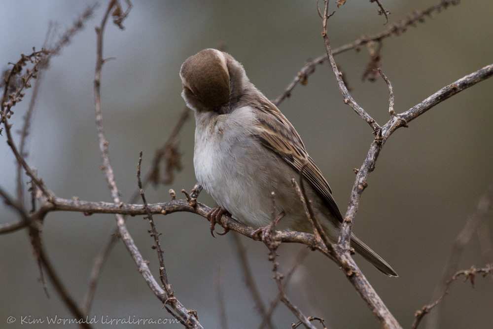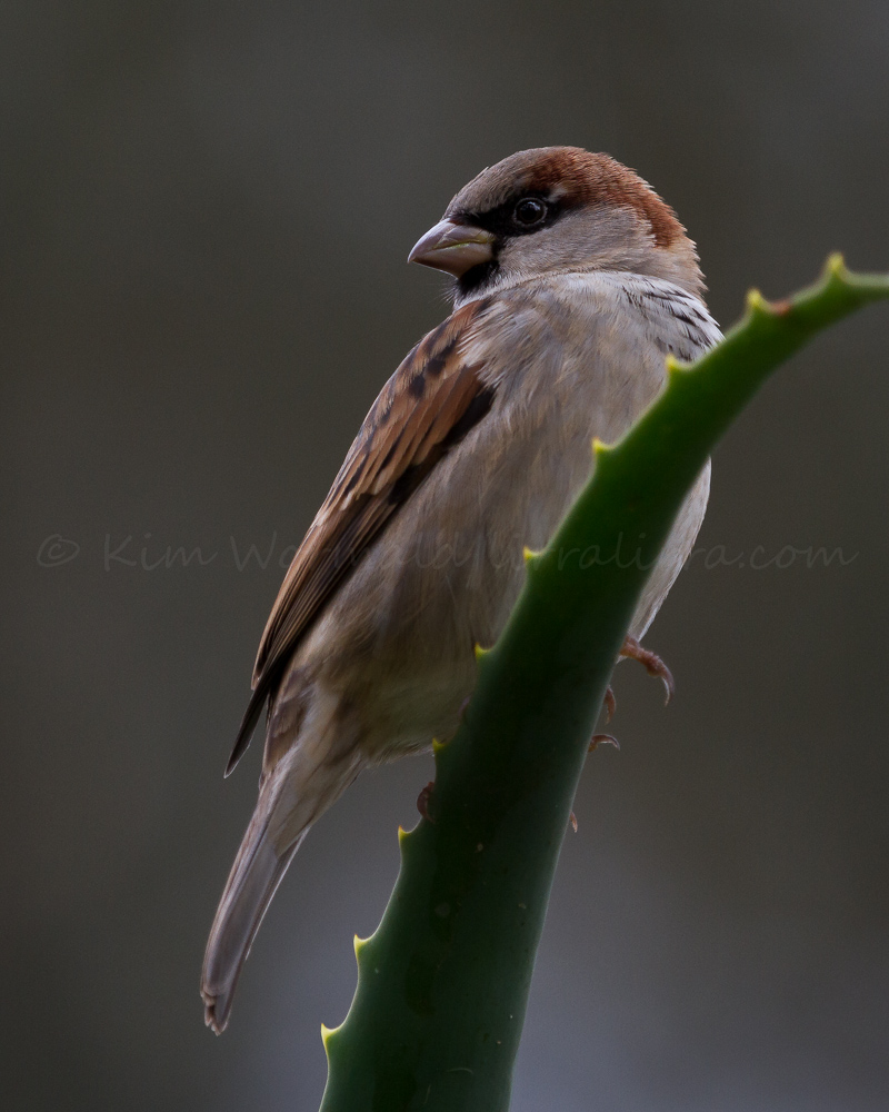 House Sparrows are 15cm long and weigh 27g (that’s three times the weight of the Spotted Pardalotes in the previous post which you can visit here). Sparrows eat a wide range of foods and most of us have tossed crumbs to them when they join us at cafes. Male sparrows are boldly marked with a black face, black bib and upperparts of black and brown.