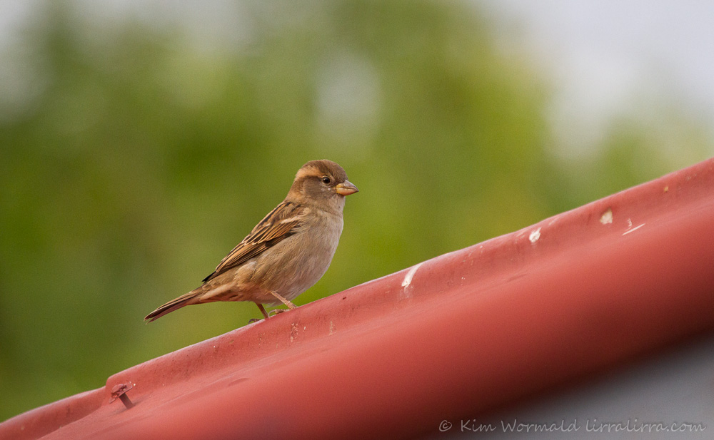 House Sparrows were introduced to Australia during the mid 1800s by settlers desperately trying to recreate their homeland. Acclimatisation Societies introduced many species including rabbits, foxes, starlings, blackbirds, songthrushes, skylarks and noxious weeds: they wanted to hunt foxes and harvest blackberries while listening to familiar birdsong.