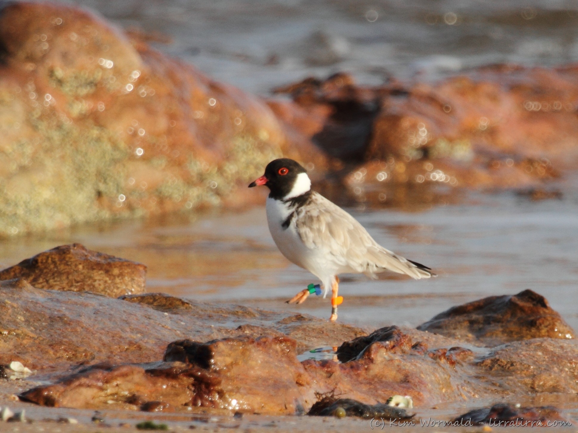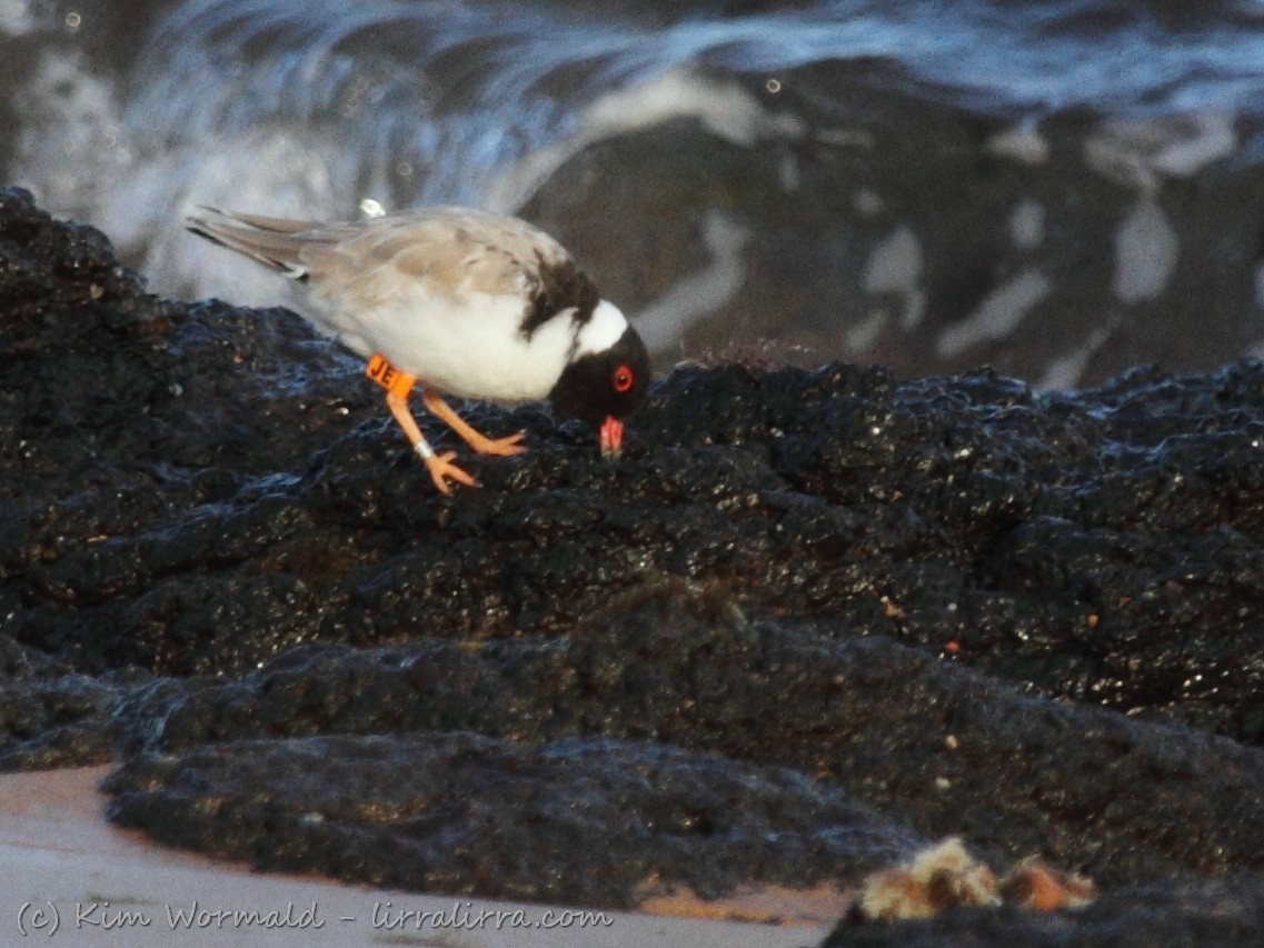 Hooded Plover (Thinornis rubricollis) – there is catch-light in the hoodie’s eye but the sea looks dark and cold.