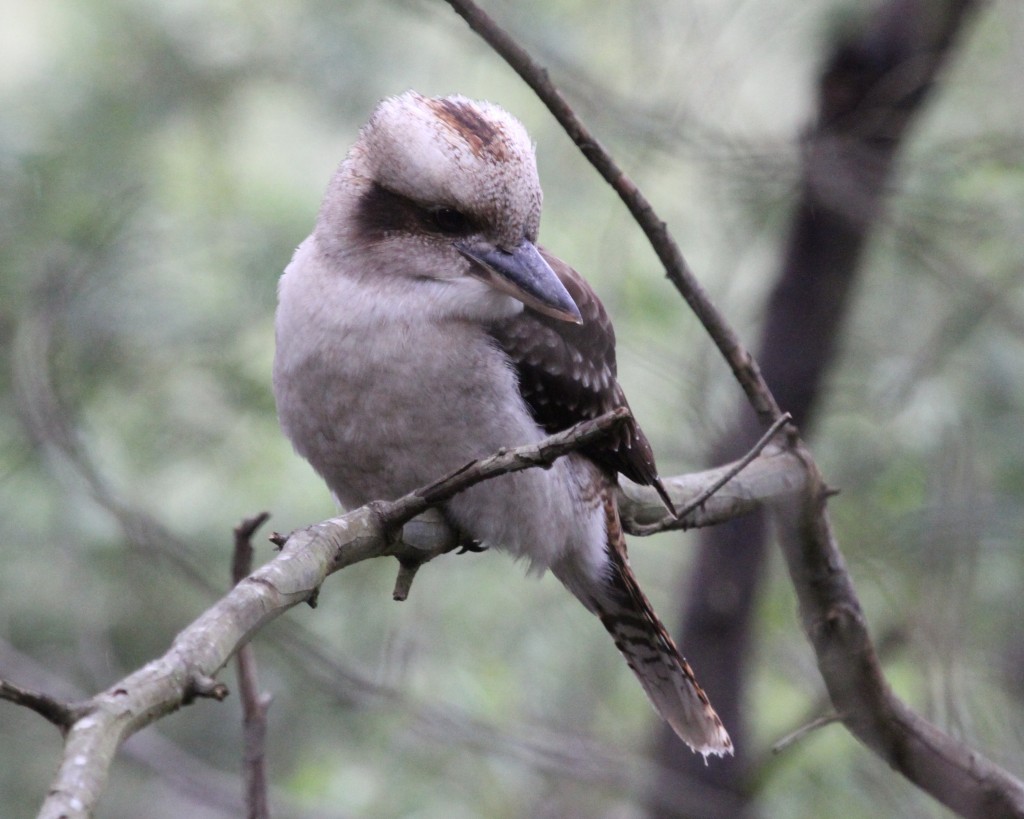 I can’t help but smile whenever I hear Laughing Kookburras’ raucous cackling, which is virtually every morning and evening. Kookaburras live in family groups and heartily ‘sing’ their territorial song at each corner of their territory. This afternoon I was with a family of four kookas who were making sure their neighbours knew where the virtual fences are. When my guys paused their neighbours called back.