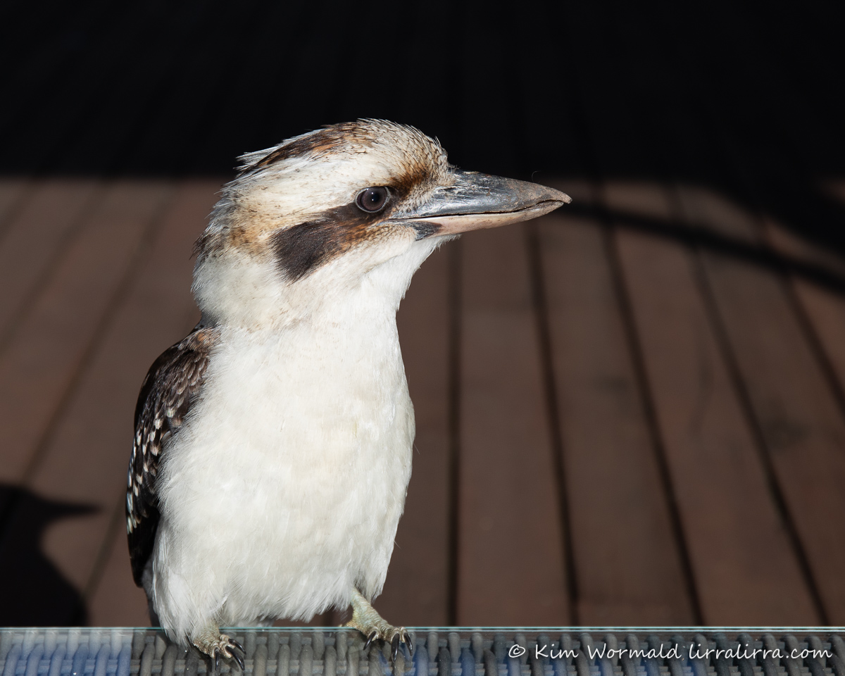 The kooka still didn’t get fed so it flew down and landed on the coffee table. So funny. It would have been too close to focus on if I’d been using my main lens.