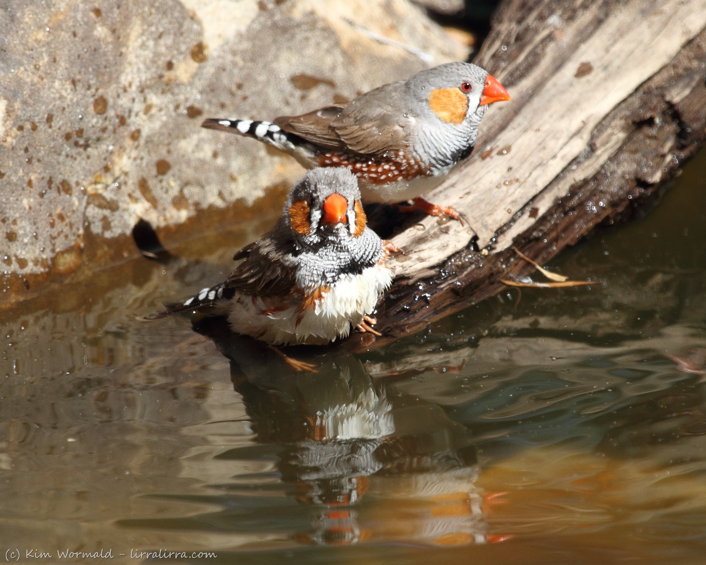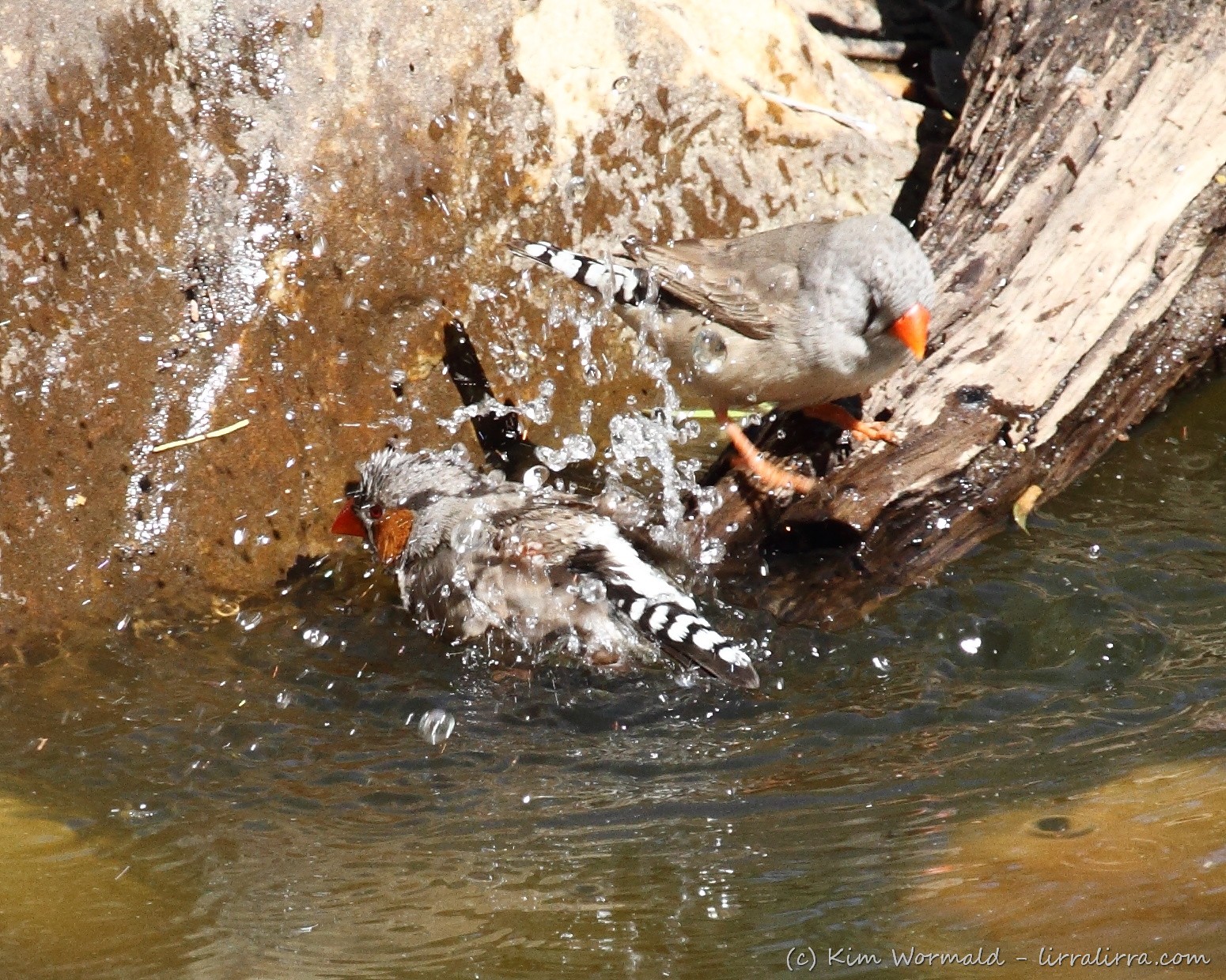 Zebra Finch – male enjoying a quick dip