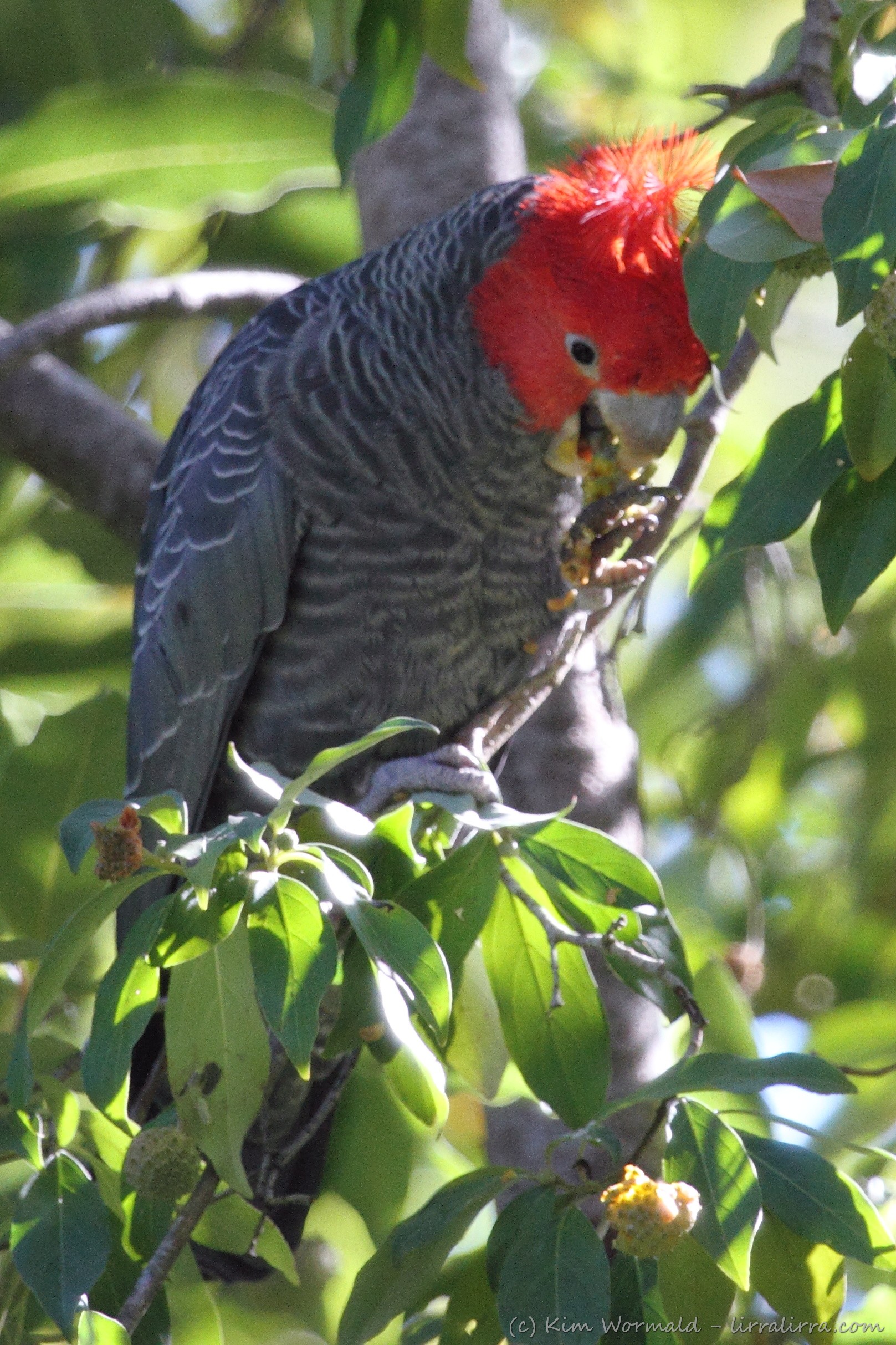 Gang-gang Cockatoo (male) (Callocephalon fimbriatum) – females have a grey head and pinkish-yellow edges to their feathers.