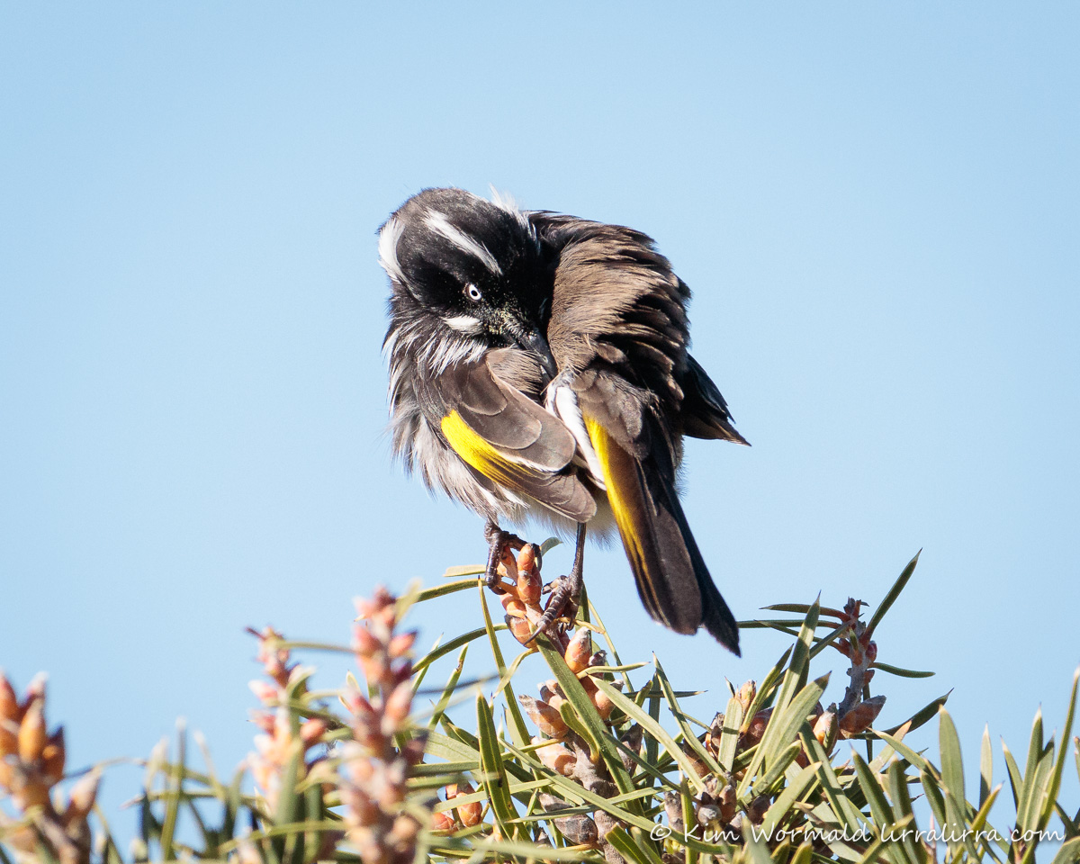 New Holland Honeyeaters are comical to watch but can look seriously sweet when preening.