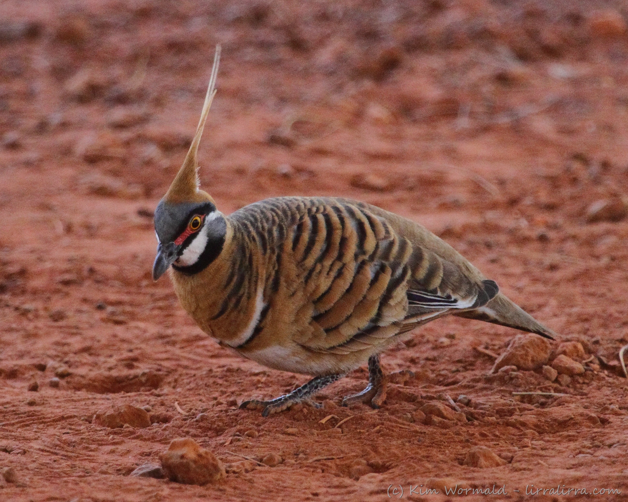 Diamond Doves, Peaceful Doves, Crested Pigeons and Spinifex Pigeons were foraging in the red desert sands and dusty gorges during our Desert Discovery trip.