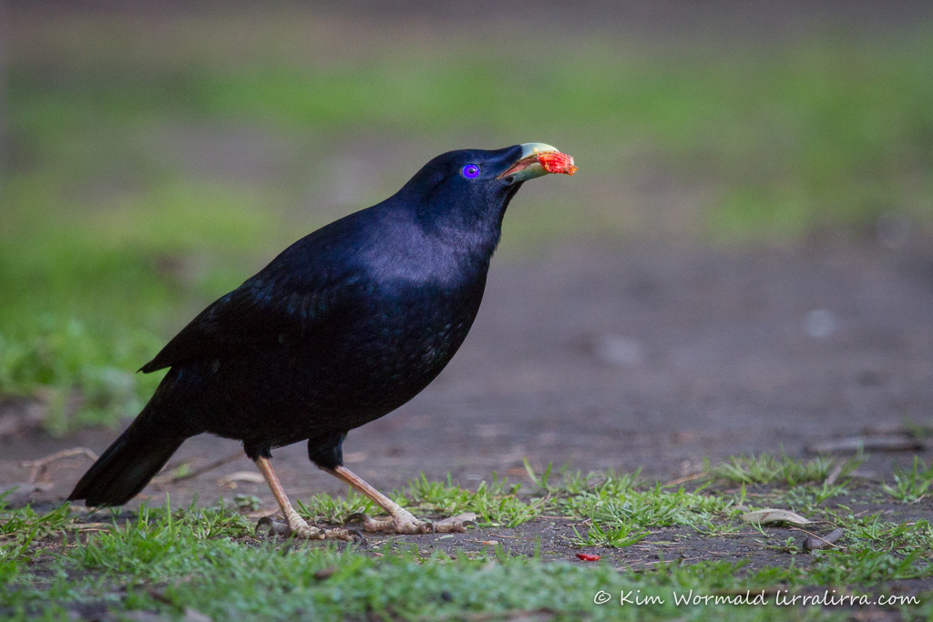 Male Satin Bowerbirds develop their dimorphic colouring between the ages of 5 and 7 years. The image above was taken several years ago but is one of the only shots I have of an adult male – I think I need to hide myself in the bushes near the bower and update my male Satin Bowerbird shots.