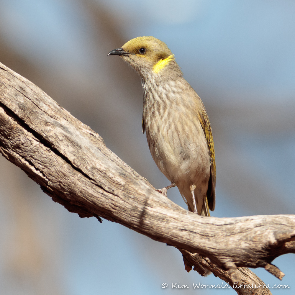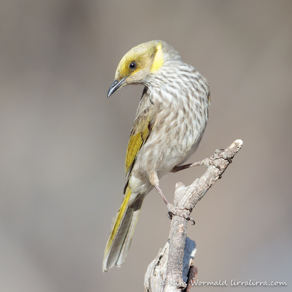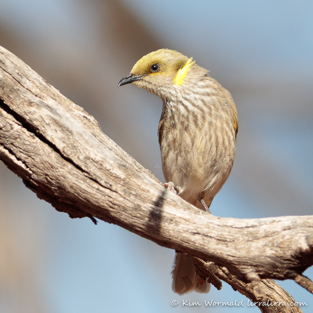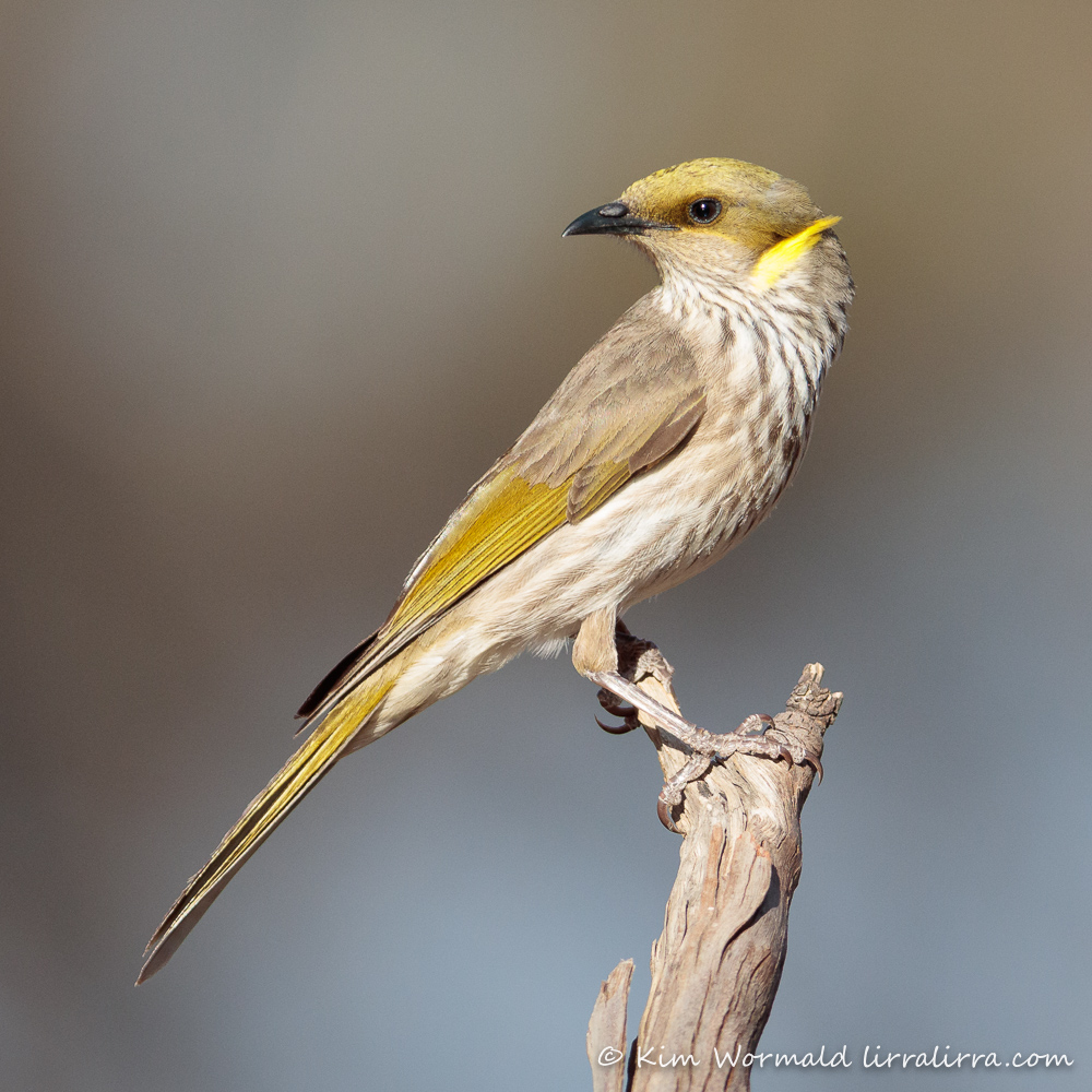 The shot above shows the Yellow-plumed Honeyeater looking very sleek and showing off the streaking on its underparts.