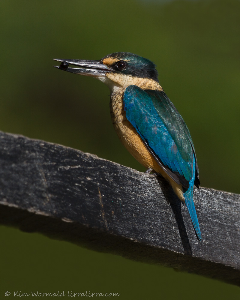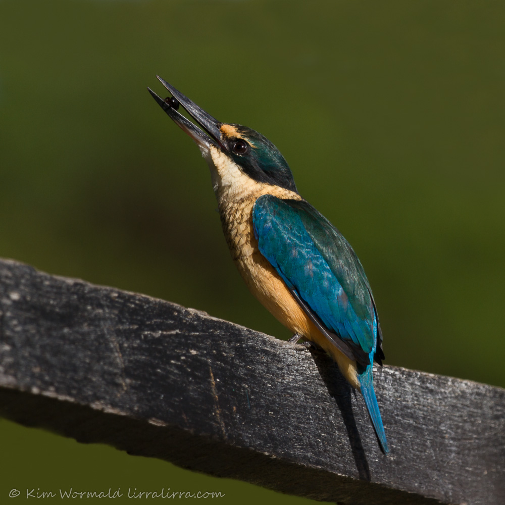 Sacred Kingfishers are beautifully coloured and look magnificent when the sunlight shines on them early in the morning or just before sunset. They stare intently at the ground, rarely at water, from a relatively low perch as they look for large insects and small reptiles.