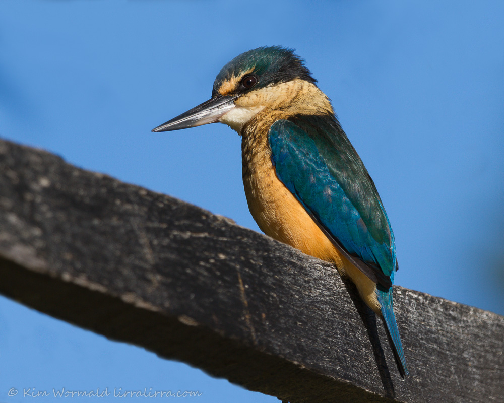 Sacred Kingfishers measure about 21cm and weigh about 45g. They are medium-sized kingfishers with stunning turquoise, green, blue, buff and white colouring. I’m just learning about post-processing options and may be able to improve these images by moving the shadows or blacks sliders, or by tweaking some other buttons that I haven’t yet learned about – I’ll keep you posted.