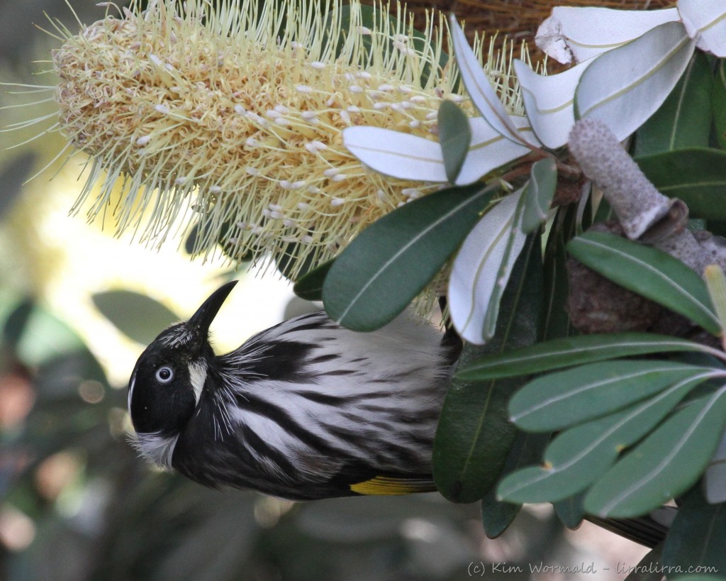 New Holland Honeyeater – feeding on banksia nectar.