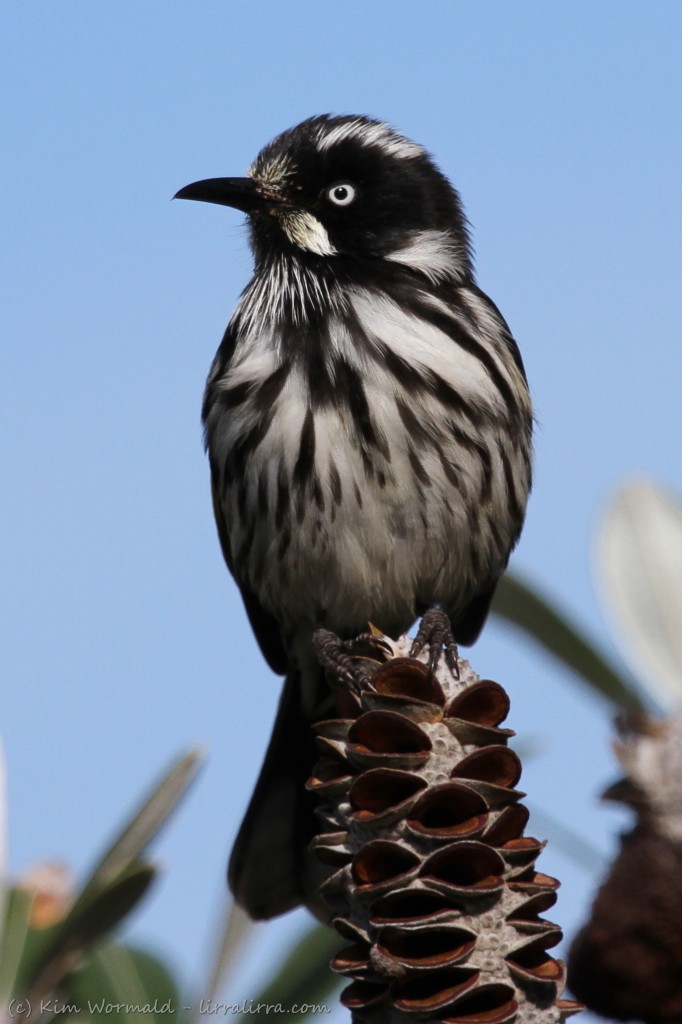 New Holland Honeyeater – posing on a banksia seedpod.