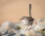This female Superb Fairywren was foraging among the pebbles at Cranbourne Royal Botanic Gardens. She moved crazily quickly as she darted after bugs and focussing on her tiny eye was quite a challenge.