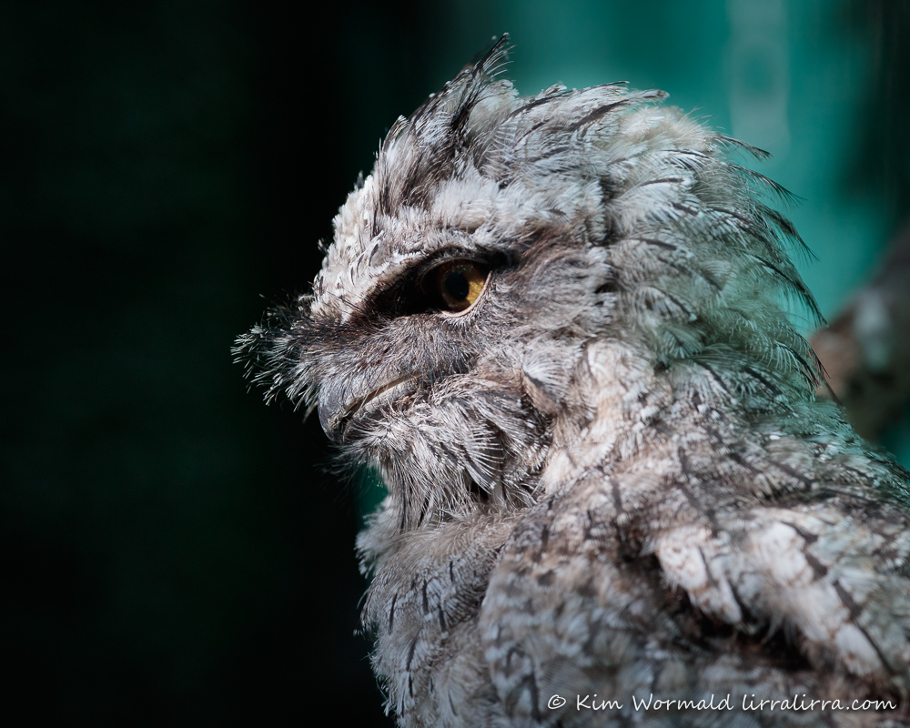 Tawnies are so comical and often remind me of muppets. Their feathers are beautifully marked and their eyes are stunning golden spheres. Lighting in the aviary wasn’t good for photography. Setting an ISO of 3200 is getting pretty close to being desperate for light. In the olden days a standard roll of film was ISO 100, if I’d used that setting I’d have had totally black photographs in the aviary.
