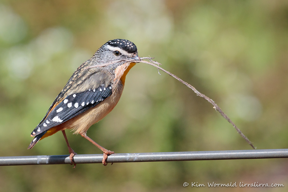 There is nothing interesting about the wire … well, as soon as I wrote that I went off on a merry goose chase trying to work out the gauge and quote it as a scale relating to the size of the bird. I started off thinking maybe it’s 5mm but that makes the pardalote bigger than 9cm and I can’t find a standard 8mm wire, even horse sighter wire is only 5.2mm. Then I checked the web for standard wire gauges and that has been taking far too long if I’m going to get this post published before midnight. A pardalote’s bill measures between 6mm and 9mm which hasn’t helped much either. A bird-watching rural fencer would be able to solve this problem this in their sleep!