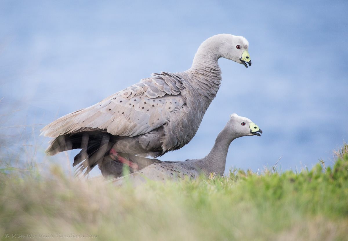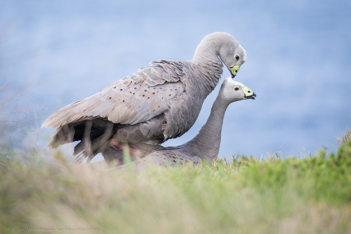 Luckily my camera was in my hands and I took four shots of a liaison that lasted two seconds. I like the delicate patterning on the feathers of Cape Barren Geese. I also like the sky space behind the female’s neck in the image above, and the gentle curve of the male’s neck; they seem to highlight an intimacy that suits birds that choose a lifelong partner.