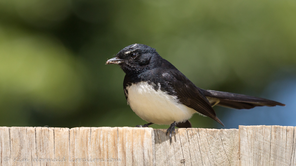Some people particularly like backgrounds with circles of light as shown above, though the circles can be far more defined that these. One of the wagtails came to the fence almost as if it was showing me the collection of bugs it had ready to feed the fledglings that were sitting in the tree. I didn’t take images of the fledglings as I didn’t want to disturb them. Willie Wagtails generally raise three nestlings per clutch and can raise up to four clutches in a good season. I wonder if the ant on the fence has any idea how close it is to danger.