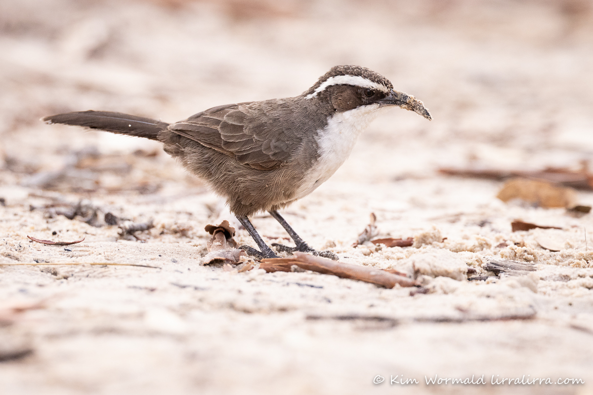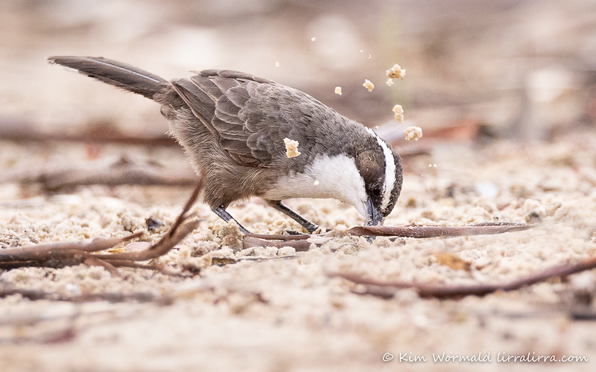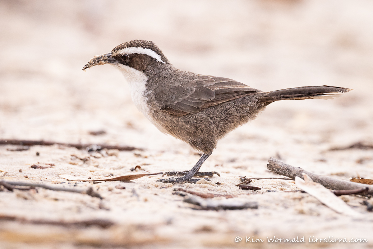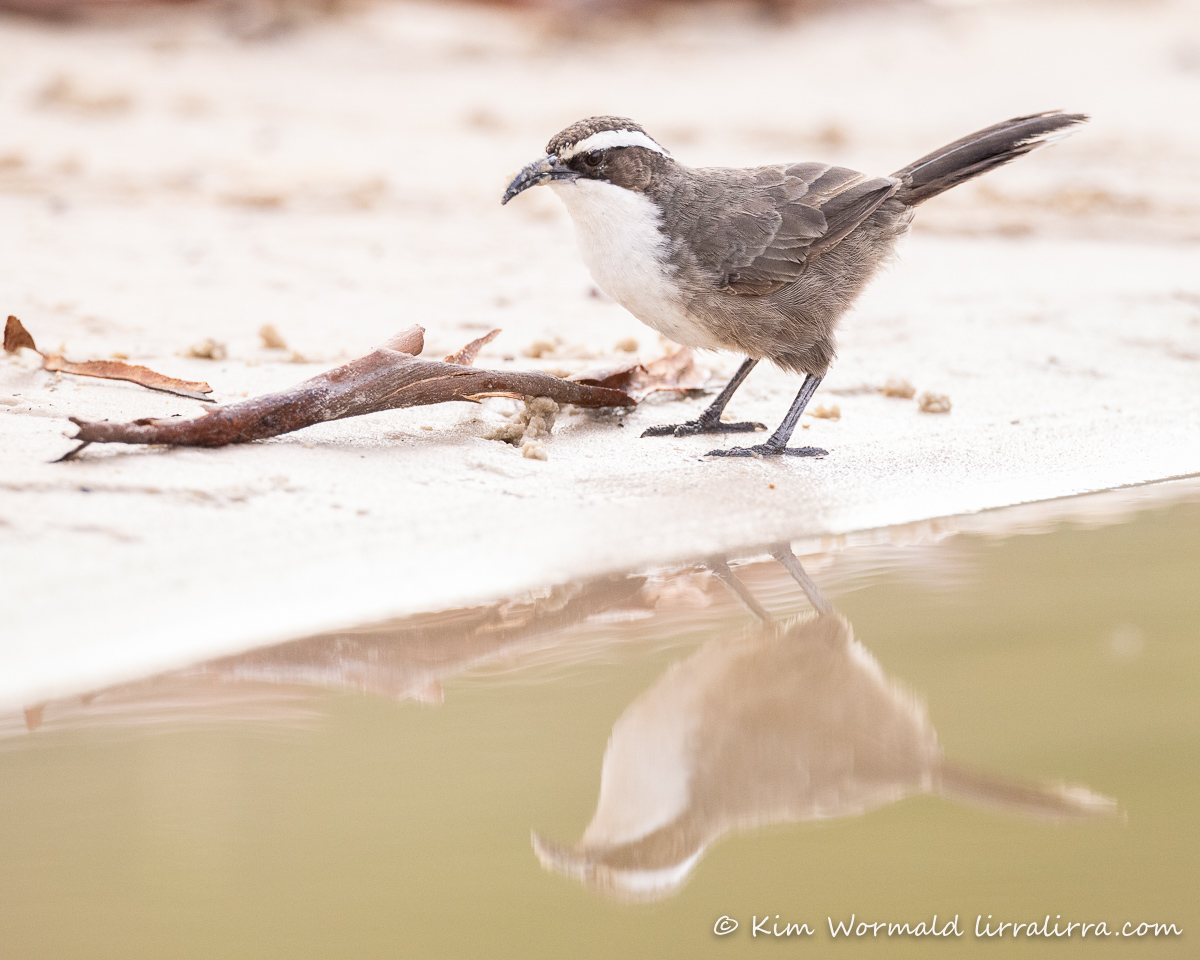 Imagine for a moment that you are stretched out on the sandy bank of a river, with your feet perilously close to the water, as a family of White-Browed Babblers forage towards you.