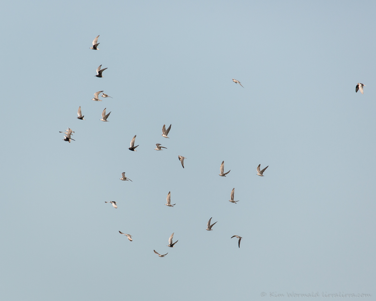 After a few minutes the terns tired of being hassled by Welcome Swallows and the birds that had been foraging across a couple of ponds gathered together and left the area. I was glad to get a shot of the group as they flew and the chance to look at the variances in their breeding colours. Hopefully they’ll have a successful breeding season somewhere between central Europe and eastern China and they’ll be back later in the year.